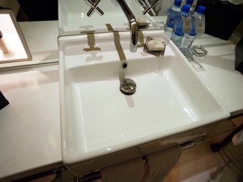擦られて黒ずんでしまった洗面台は製品劣化のため、綺麗に見えない場合があります。